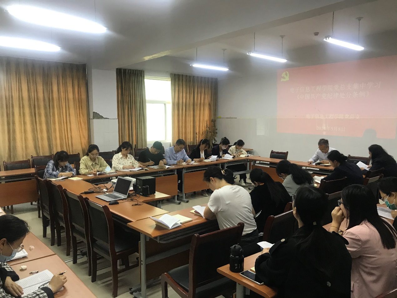 为扎实开展党纪学习教育,筑牢拒腐防变的思想道德防线,2024年5月8日下午,电子信息工程yl9193永利党总支在拓新1号楼1331会议室开展“以案促改”党纪学习教育,党总支副书记曹玉瑞主持,全体党员参加。