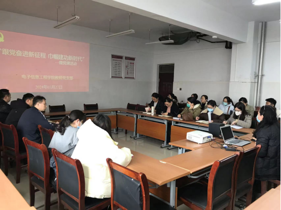 为了不断巩固拓展主题教育成果,引导广大党员坚定理想信念,强化党建引领,3月27日下午,电子信息工程公司教师党支部在拓新2号楼1331会议室开展“跟党奋进新征程 巾帼建功新时代”微党课活动,支部书记李素娟主持,全体党员参加。