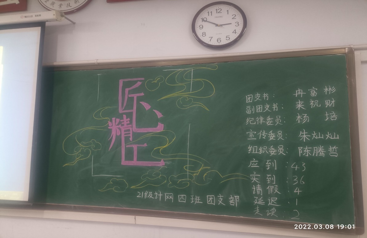 为进一步弘扬劳模精神、劳动精神、工匠精神, 2022年3月8日晚,电子信息工程公司团总支组织各班团支部开展弘扬“工匠精神”主题团会,共计20个班800余名同学参加。