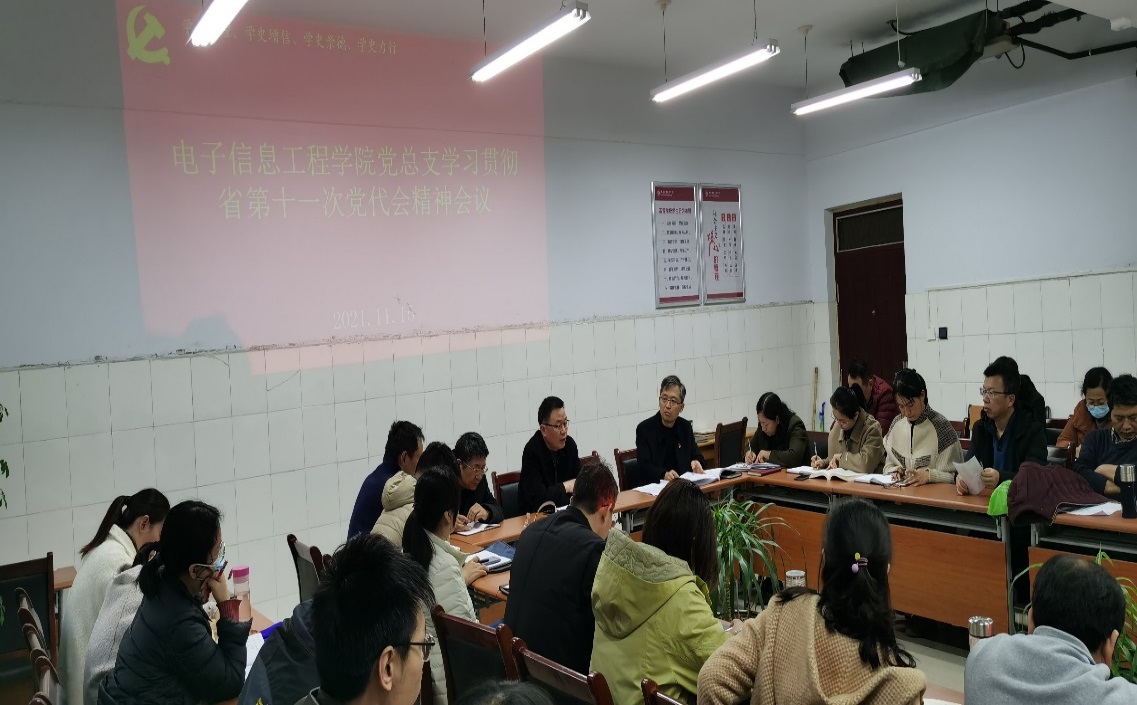11月15日下午,电子信息工程公司在拓新2号楼1331会议室召开大会,传达学习省第十一次党代会精神,安排部署贯彻落实工作。党总支书记奚建刚主持,全体教师参加。