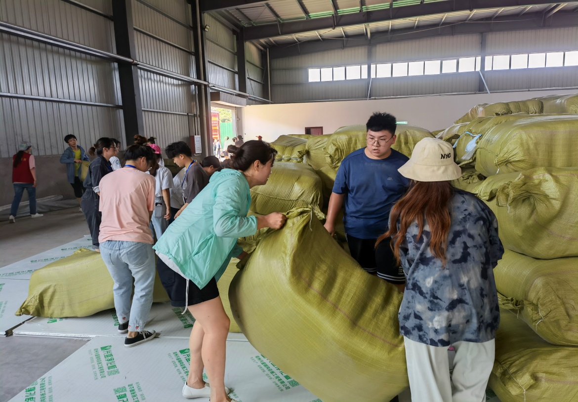 首先赶赴东区百佳产业园,为了能早点让救灾物资送至灾民手中,汗水顺着脸颊而下,却不愿停下来去擦拭,大家都是满怀激情地沉浸于救援物资装卸工作中。接下来,看到微信群中通知淇滨大道与泰山路交叉口东北角物资存放站急需志愿者卸运物资,大家又驱车赶赴帮忙。