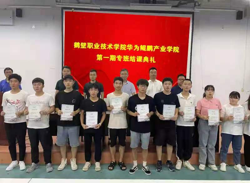 7月11日上午,电子信息工程公司首届鲲鹏专班结课仪式在拓新2号楼二楼阶梯教室举行。华为技术有限公司鹤壁教育行业代表张俊、中原鲲鹏生态创新中心品牌部经理孙星星、参加鲲鹏人才双选会的八家企业代表、电子信息工程yl9193永利党总支副书记曹玉瑞以及144名鲲鹏专班员工参加了结课仪式。结课仪式由鲲鹏专班班主任王鹏宇主持。