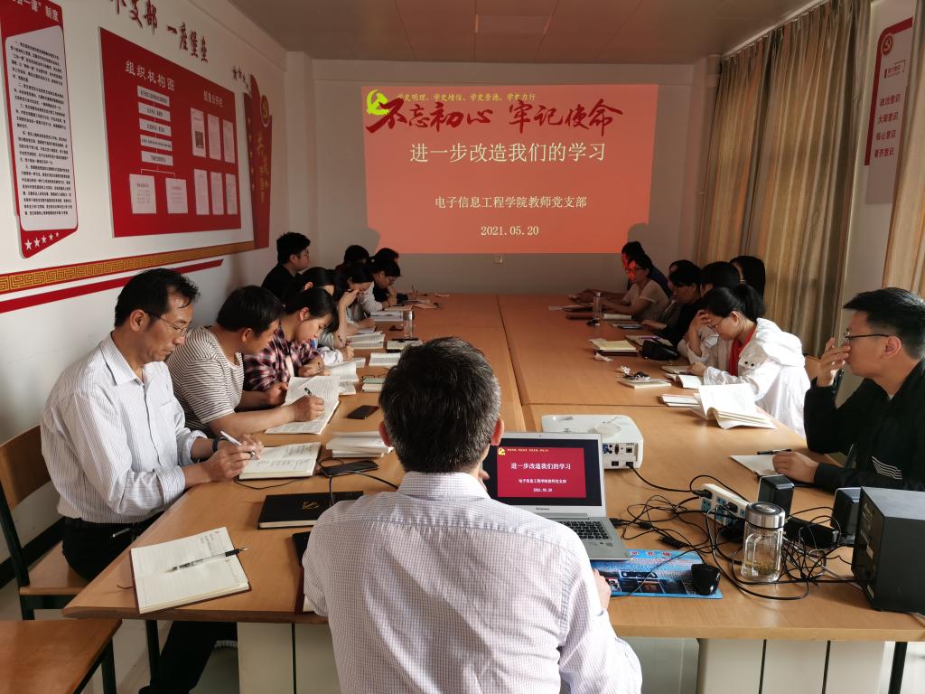 按照党史学习教育计划安排,5月20日下午电子信息工程公司教师党支部在1325开展“学习党史,砥砺奋进”第一次微党课学习交流活动,会议由党总支副书记、教师党支部书记曹玉瑞主持,党支部全体党员参加。
