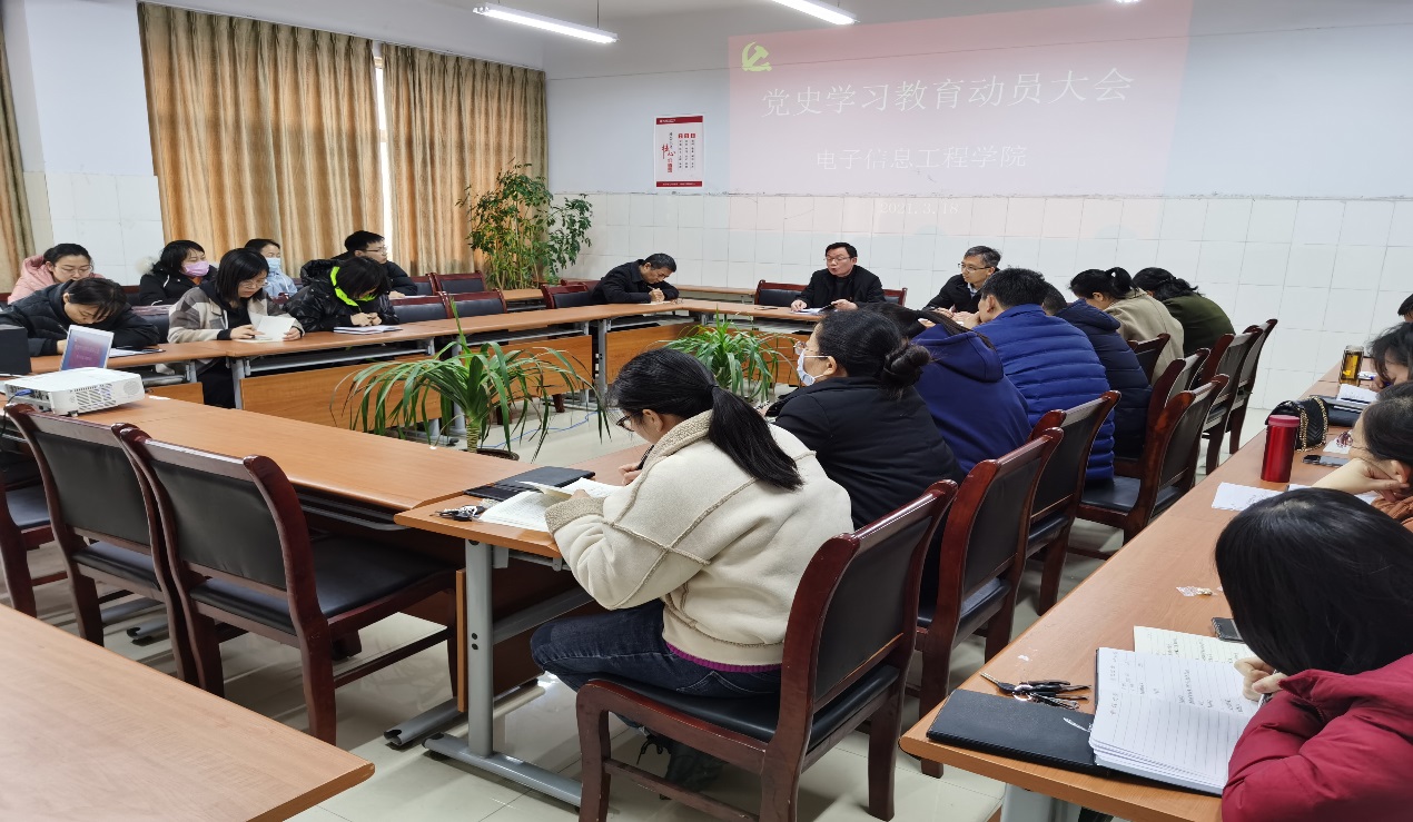 2021年3月18日下午,电子信息工程公司在拓新2号楼1331会议室召开党史学习教育动员大会,奚建刚书记主持,全体教职工参加。