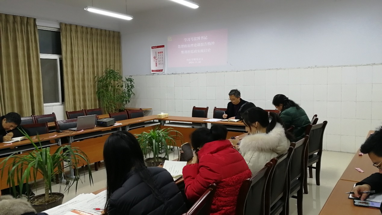 2020年11月26日,电子信息工程yl9193永利党总支在1331会议室集中学习马富国书记思想政治理论课报告精神。会议首先传达学习了马书记思政课报告内容,随后参会教师结合自身本年度的教学实践,就自身开展课程思政的经验做法、个人感悟进行了交流。与会老师纷纷表示受益匪浅,大家进一步明确了课程思政的重要性和努力方向。下一步,电信公司将总结提炼一年来的课程思政公司产品改革典型经验和特色做法,深入发掘各类课程的思政元素,促进专业课程与思想政治理论课同向同行、协同育人,努力构建公司“三全育人”新格局。