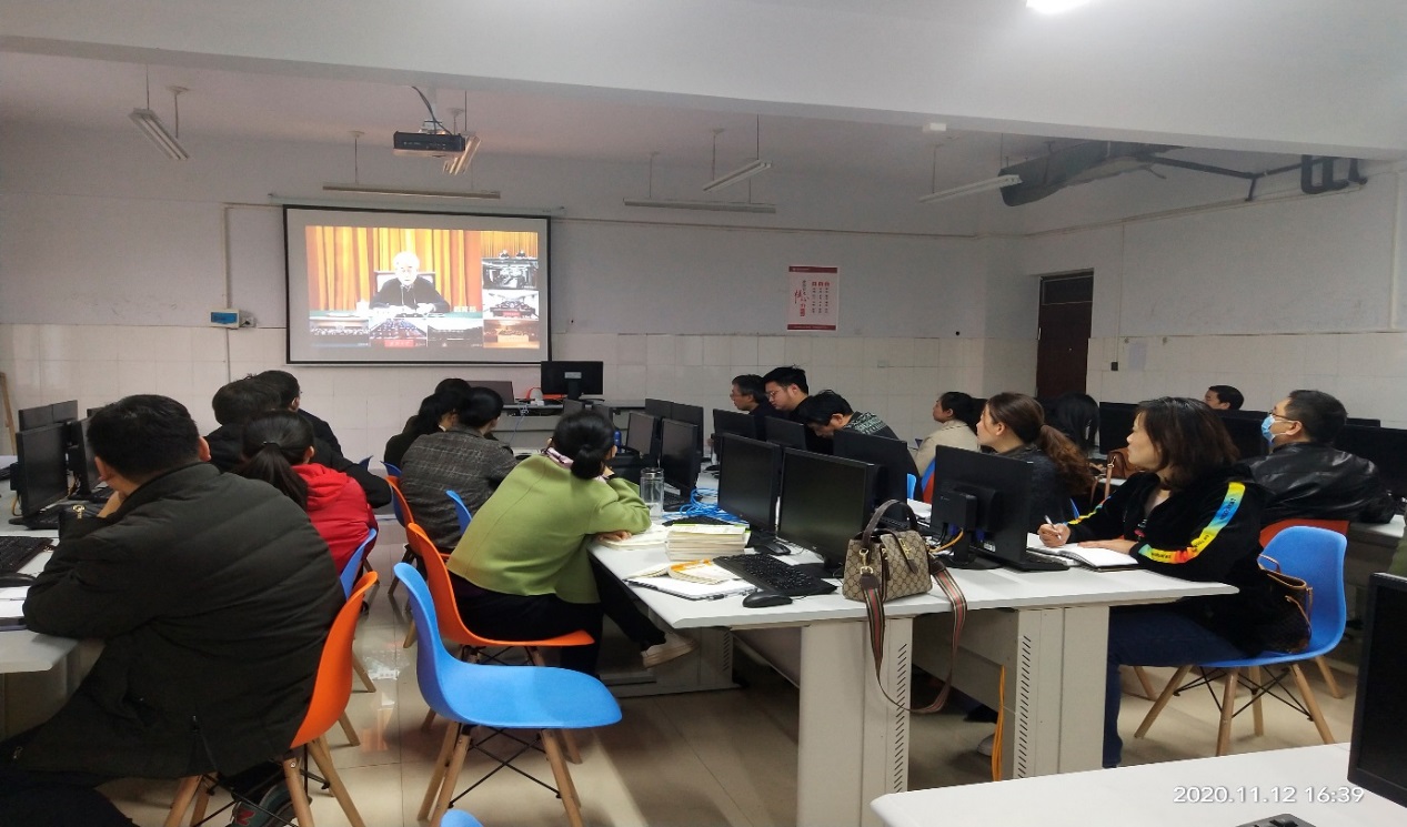 2020年11月12日下午,电子信息工程公司组织教职工在1237教室收看教育部召开的教育系统党的十九届五中全会宣讲报告视频会议,党总支副书记曹玉瑞主持,26名教师参加。