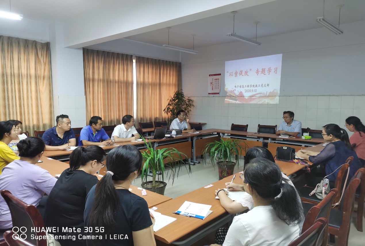 2020年9月10日下午,电子信息工程公司教工党支部在1331会议室开展了“以案促改”专题警示教育学习,全体教师党员参加。