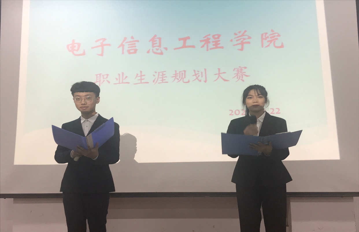 2020年10月22日晚19:00,电子信息工程公司在拓新楼2楼阶梯教室举行老员工职业生涯规划大赛。yl9193永利党总支副书记曹玉瑞、学管办主任刘香坤、辅导员董震江、企业教师白玉、张立和2019级200余名员工参加。